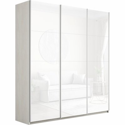 Шкаф-купе 3-х дверный Прайм Белое стекло/Белое стекло/Белое стекло 1800 мм Белый снег