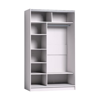 Продуманное внутреннее наполнение шкафа состоит из стеллажа для белья и стационарной штанги длиной 725 мм. На ней поместится как минимум 10 плечиков с верхней одеждой. Зеркальная дверца с обратной стороны проклеена специальной защитной пленкой, которая предотвратит от падения осколков, если она разобьется. В изготовлении шкафов-купе STRIKE использована прочная стальная система треков «Найди» цвета Металлик. Двери шкафов дополнены ручками из массива и шлегелем, который смягчает удары дверей при закрывании, а также защищают вещи от попадания пыли. Благодаря скрытым полкодержателям полки жестко крепятся на необходимой высоте.