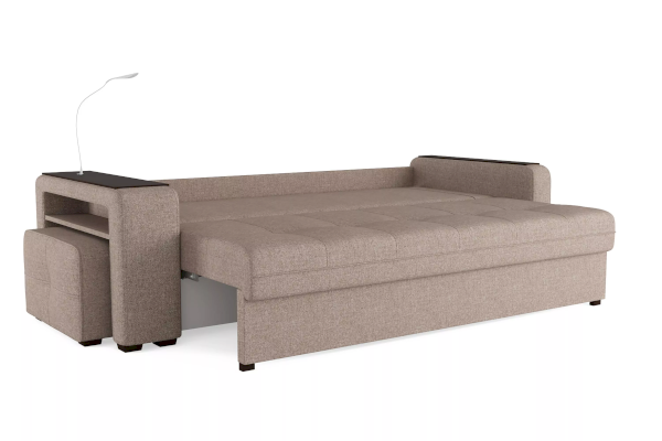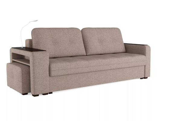 Добавить контрастных деталей в интерьер поможет пуф, интегрированный в подлокотник. Этот вариант для современных людей, которые ценят комфорт и удобство отдыха. Мягкое сиденье с легкостью трансформируется в просторное спальное место, на котором смогут утроиться ваши гости. Стильный и уютный, он станет отличным решением, если вы ищите не только красоту, но и комфорт.