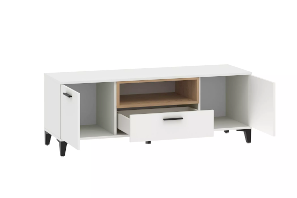 Продуманная конструкция и минимальные габариты делают тумбу ТВА Bergen функциональной и стильной. Простые геометрические формы, нейтральные цвета с ярко выраженными элементами в виде контрастных вставок цвета дерева и черных ручек подойдут для светлых и темных интерьеров.