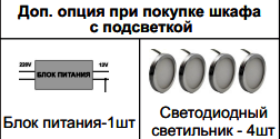 Шкаф комбинированный, Полка, Шкаф для посуды могут дополнительно комплектоваться подсветкой.