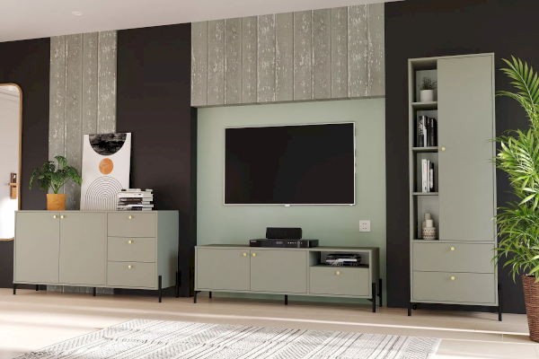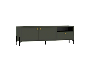 Тумба оснащена двумя полками с распашными дверками, которые закрываются мягко и легко за счет механизма с доводчиком, выдвижным ящиком с системой шариковых направляющих, при помощи которых ящик выдвигается бесшумно, а также открытой нишей. Благодаря комбинации закрытых и открытых ниш можно удобно разместить аудио- и видеоаппаратуры, а также все необходимые книги и предметы интерьера, они не будут разбросаны в хаотичном порядке, а оригинальные высокие опоры обеспечивают быстрый и комфортный доступ при уборке. Дополните тумбу шкафом из одноименной коллекции, чтобы оптимизировать место хранения и создать особо гармоничную атмосферу.