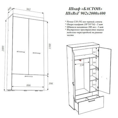 Шкаф Бастон (Эра) - за 12 440 руб. в Твери. Купите на сайте mebelmarket-tver.ru или по телефону 8(800)505-30-63 уже сегодня! Уточнить наличие, комплектацию, актуальную цену можно бесплатно у менеджера ежедневно. Закажите Шкаф Бастон (Эра) до конца акции! Доступна покупка в кредит, рассрочку. Доставим со склада или на заказ.