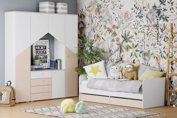 Особенности стиля детской «Банни» - это светлые, спокойные оттенки в единой гамме. Скандинавская стилистика не любит загромождения мебелью. Только функциональность и практичность. Если правильно спланировать интерьер, в детской будет много места для хранения и пространства для игр.