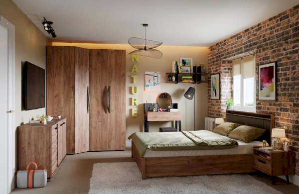 Двуспальная кровать NATURE Люкс станет стильным дополнением для вашей спальни. Спокойный древесный декор кровати поможет создать атмосферу настоящего уюта и комфорта в комнате. А контрастные вставки из ЛДСП и декоративные золотые нити на черной экокоже сделают изголовье кровати более интересным и современным. Экокожа очень легко чистится и не выгорает под воздействием солнечных лучей. Для кровати можно докупить Основание универсальное с подъемным механизмом, тем самым скомплектовать кровать с вместительным дополнительным местом для хранения. Подъемные кровати позволяют экономно использовать пространство вашей спальни, а специальный механизм подъема с газлифтами - легко пользоваться отделением для хранения.